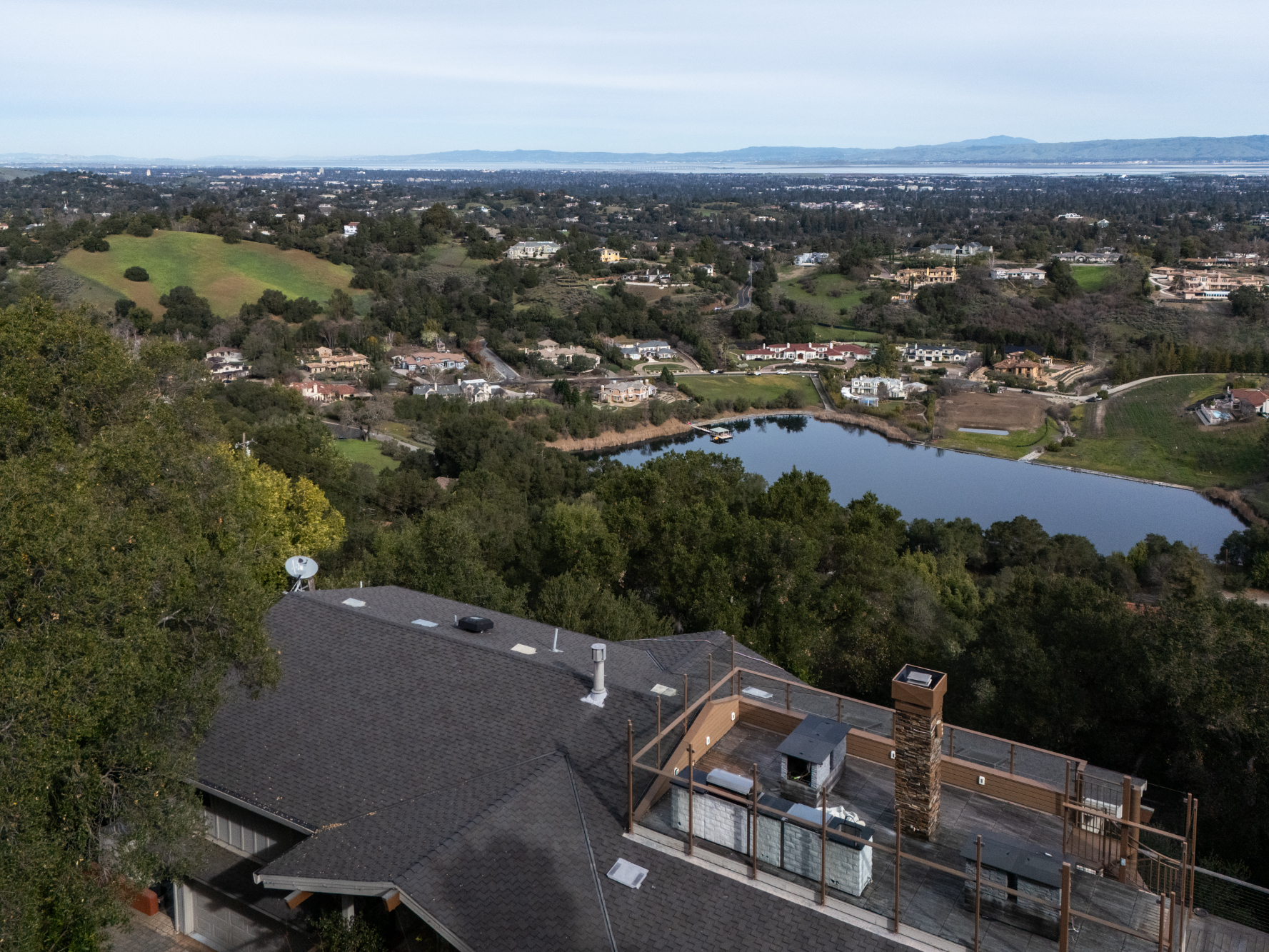 Sweeping Bay views extend from San Francisco to San Jose and serve as a backdrop from nearly every room of this home. Interiors unfold across two levels, plus a rooftop deck, and include 4 bedrooms and 2.5 baths, offering a floor plan that supports both everyday living and memorable entertaining. Walls of glass frame the ever-changing outlooks, while vaulted and beamed ceilings add volume and architectural interest. Fresh paint and newly refinished hardwood floors provide a cohesive finish throughout the living spaces and the bedrooms. The main-level primary suite opens to its own view deck with uninterrupted vistas. Three additional bedrooms and a family room on the lower level create comfortable accommodations for family members and guests. Each level connects to expansive view decks, linked by a spiral staircase that continues upward to a dramatic rooftop terrace. Complete with an outdoor kitchen, this elevated setting delivers a true showpiece venue for enjoying the Bay views from sunrise through evening lights.
