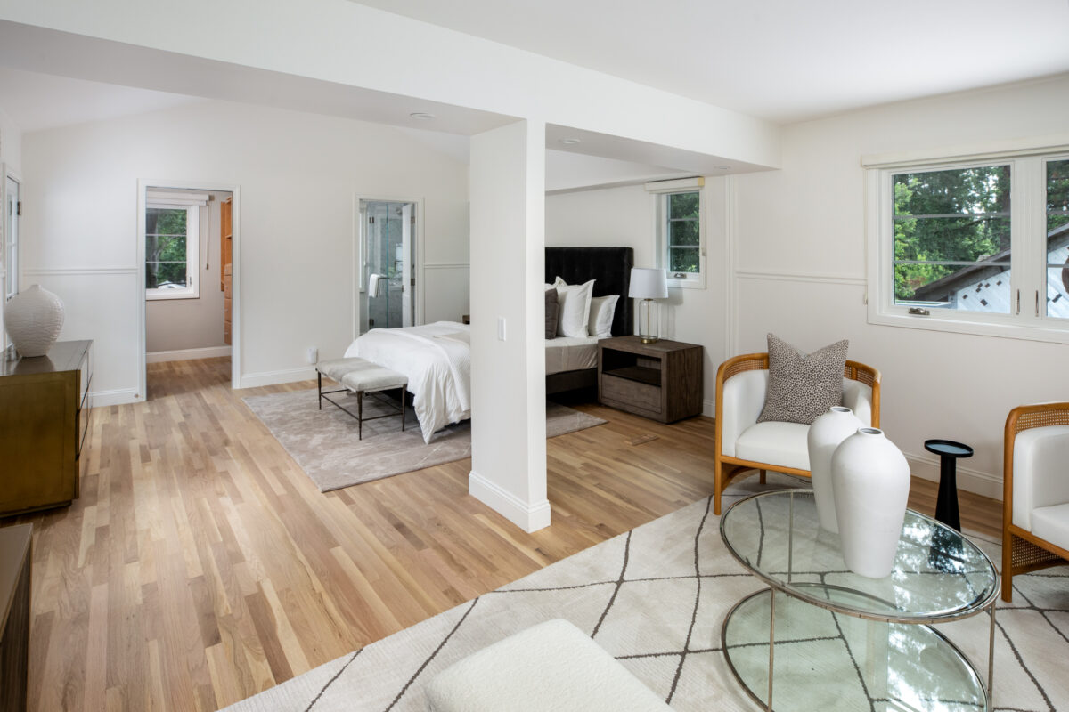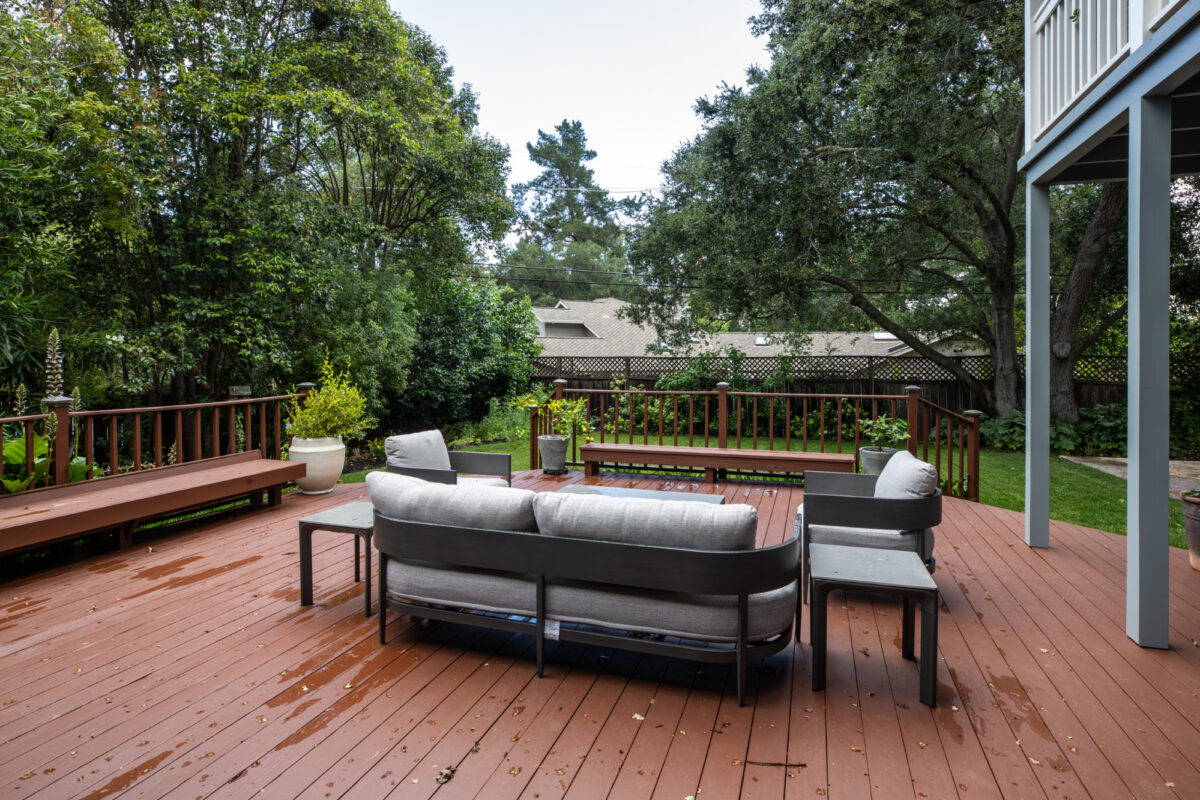 This thoughtfully remodeled Woodland Acres home offers a spacious two-story floor plan on approximately one-third acre. There are 4 bedrooms and 3 baths, including a privately located main-level bedroom with built-in Murphy bed that is ideal for guests or office use, plus an upstairs primary suite with its own sitting or office area, balcony overlooking the rear grounds, and remodeled bath. Two additional main-level bedrooms have direct access to an all-new bath. Fresh updates throughout include refinished hardwood floors, newly painted interiors, and updated landscaping, including a newly planted front lawn beneath a heritage Valley Oak. A formal living room with fireplace and deck access is complemented by the great room with dining area, remodeled kitchen, and spacious family room opening to the rear yard with a second large deck and patio. Completing the home is an attached 2-car garage with EV charging outlet. All of this in the sought-after Woodland Acre neighborhood with convenient access to shops, restaurants, and major commute routes, plus excellent Cupertino schools.